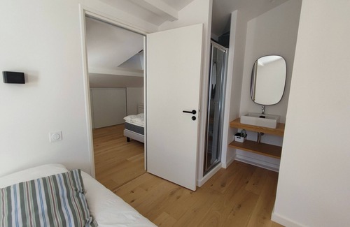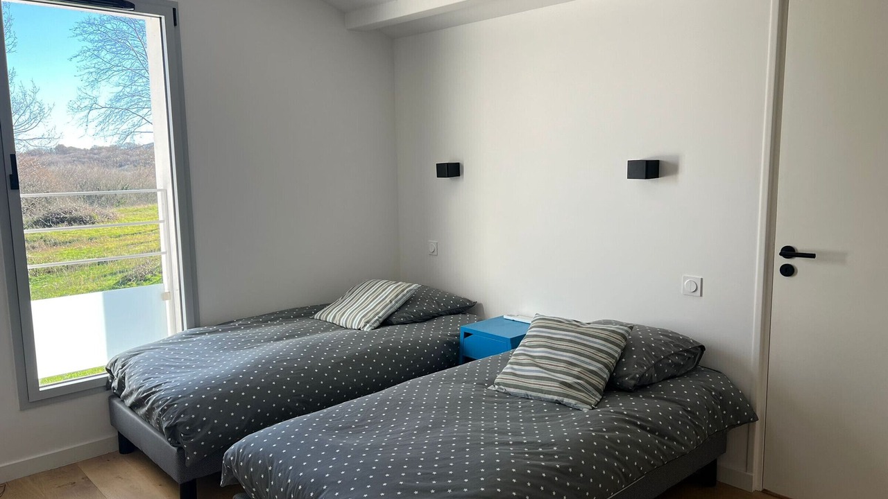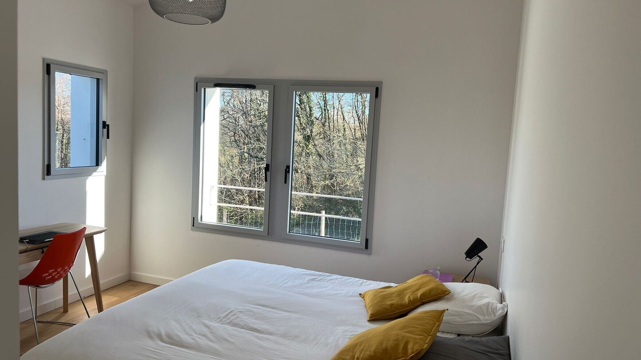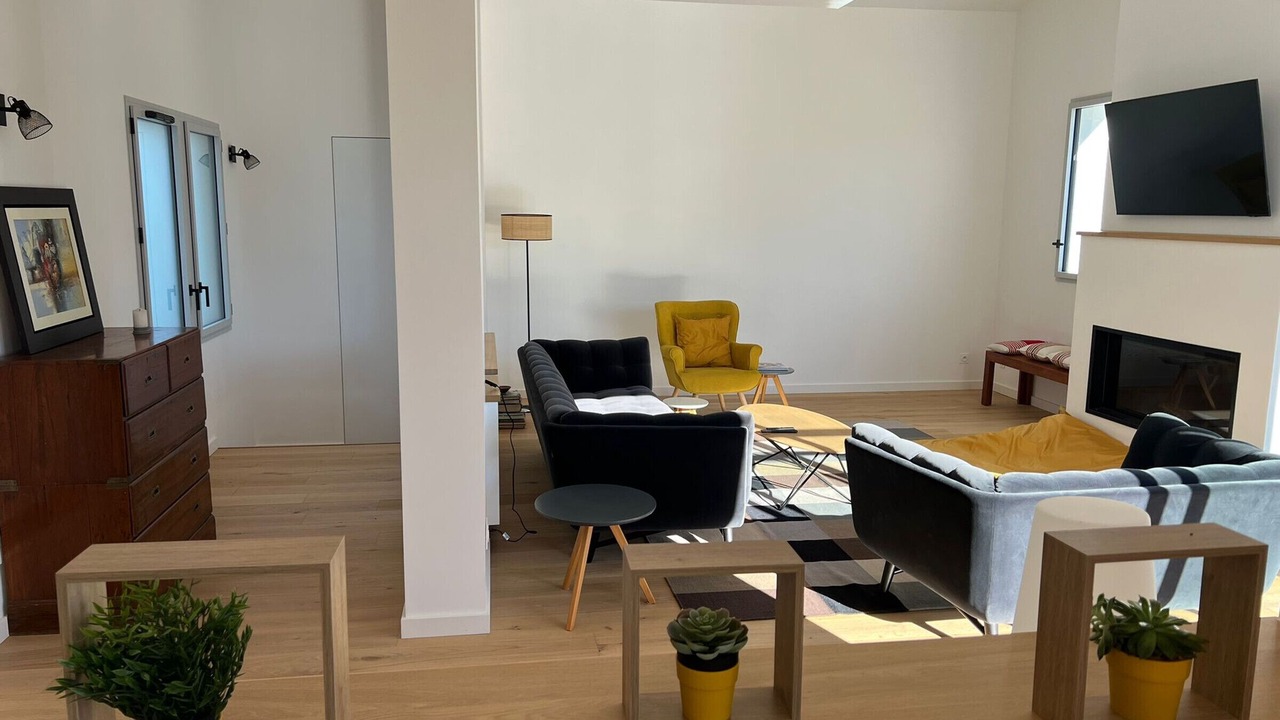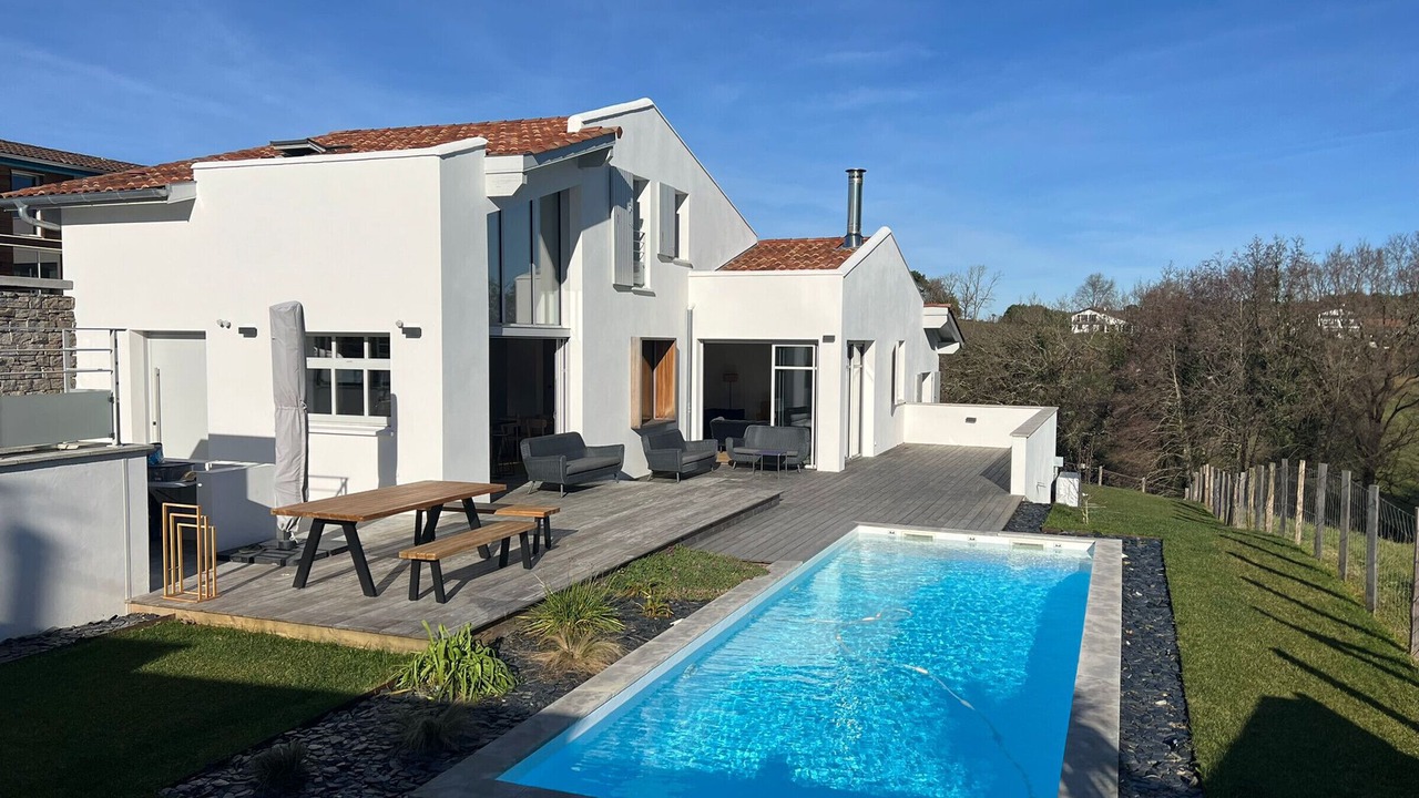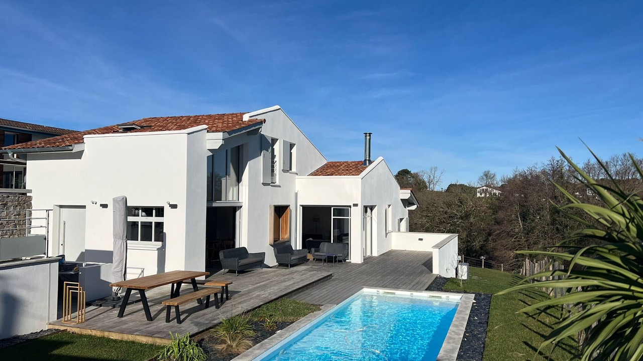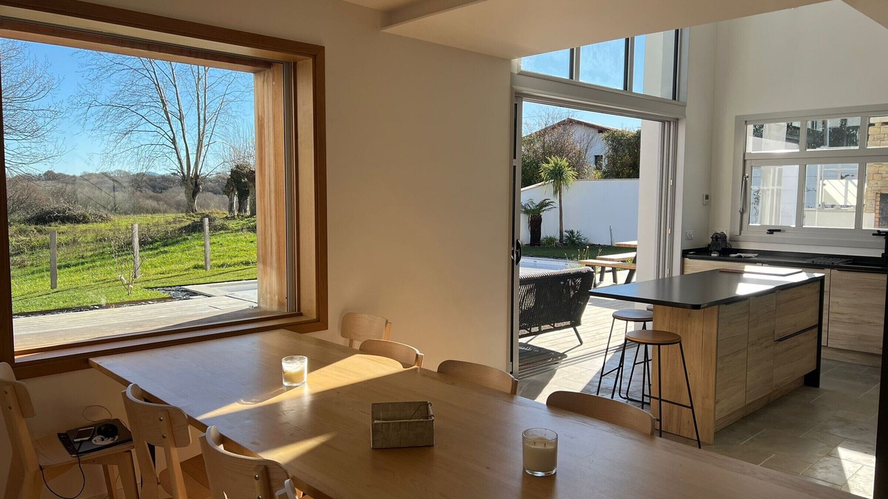 Welcome to our setting of refinement and modernity in Arbonne! This new architect-designed house, with a generous surface area of 150m², offers an idyllic setting for your vacation with its 4 bedrooms, 3 bathrooms and a large living room bathed in light.