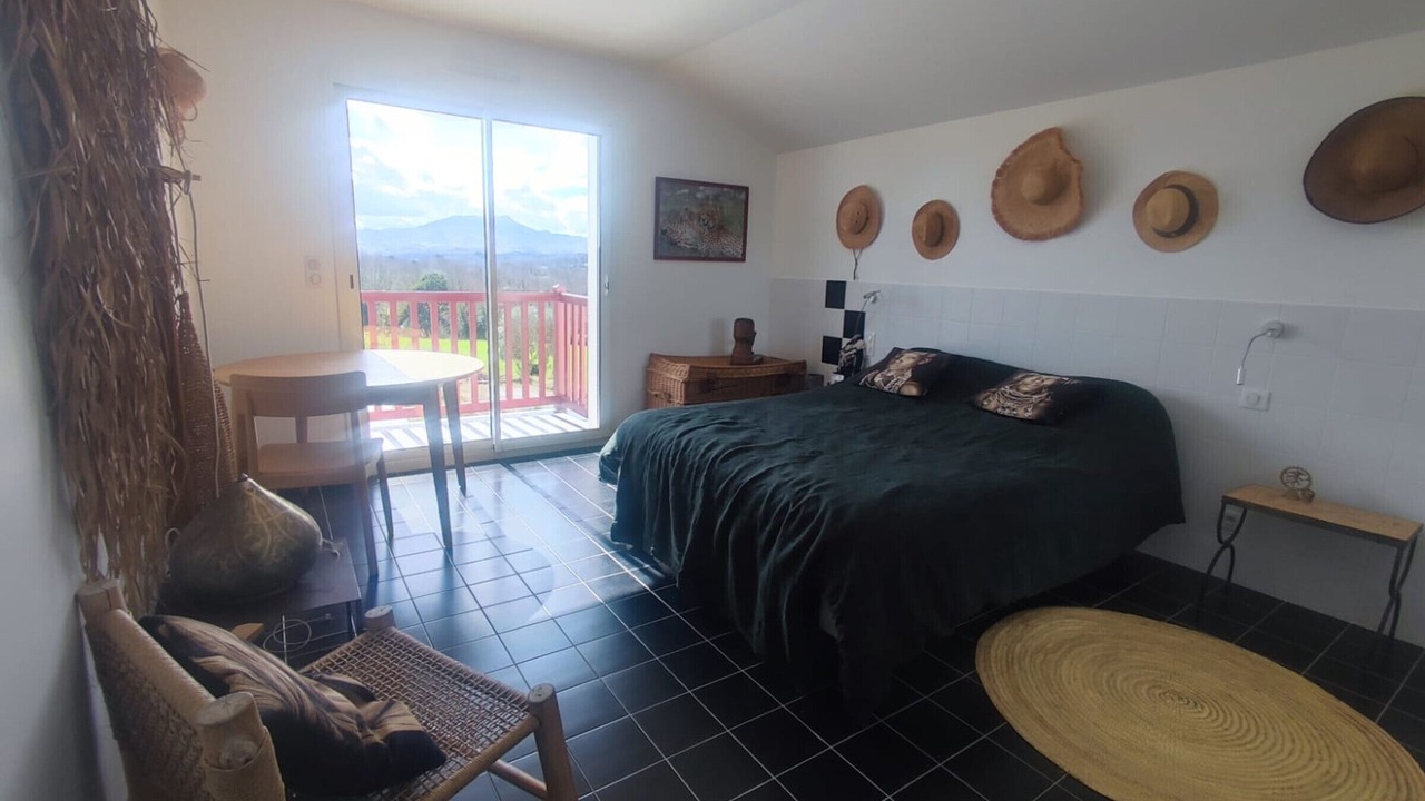 Upon entering the home, you will discover a carefully thought-out layout. On the left, a separate toilet welcomes you, while on the right, a first luxurious suite awaits you, equipped with separate toilets, a large bathroom, and a spacious bedroom offering a panoramic view of the Rhune and the swimming pool.