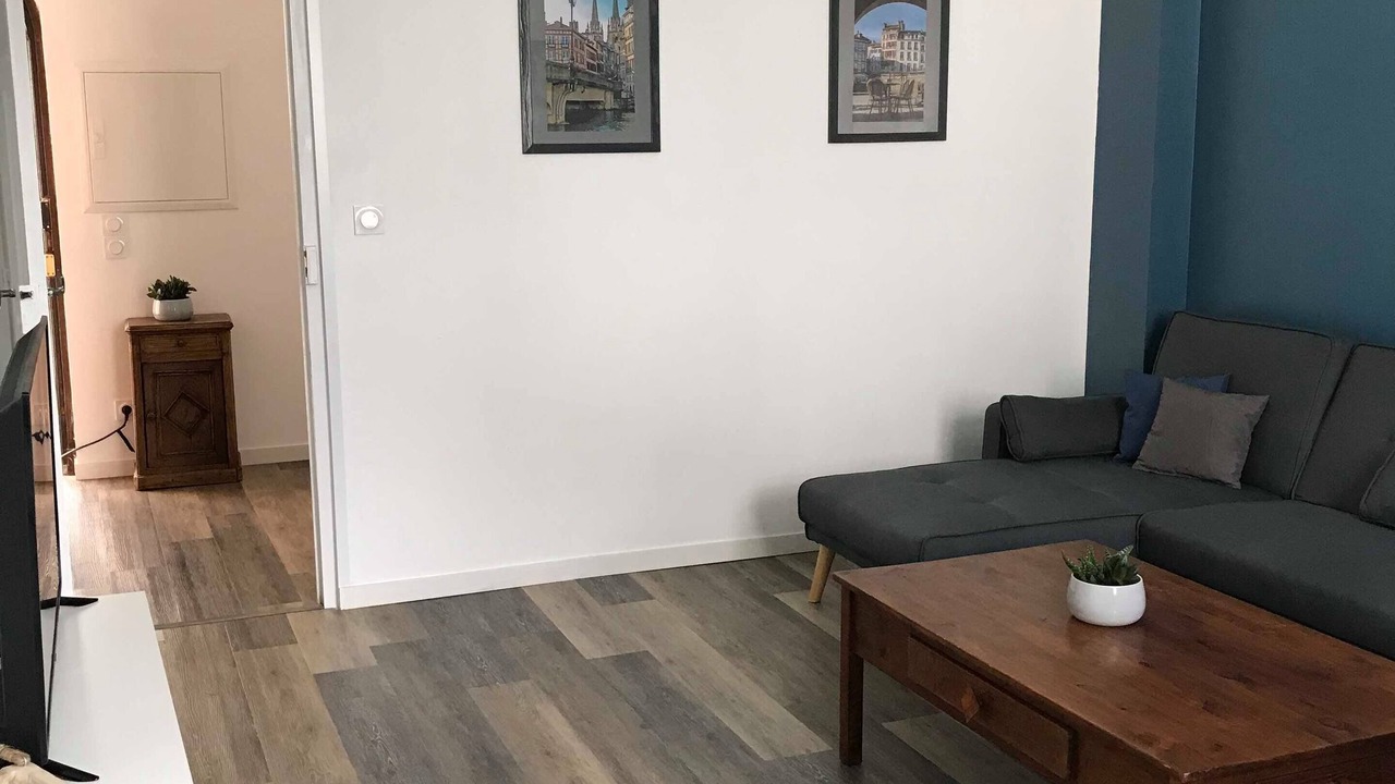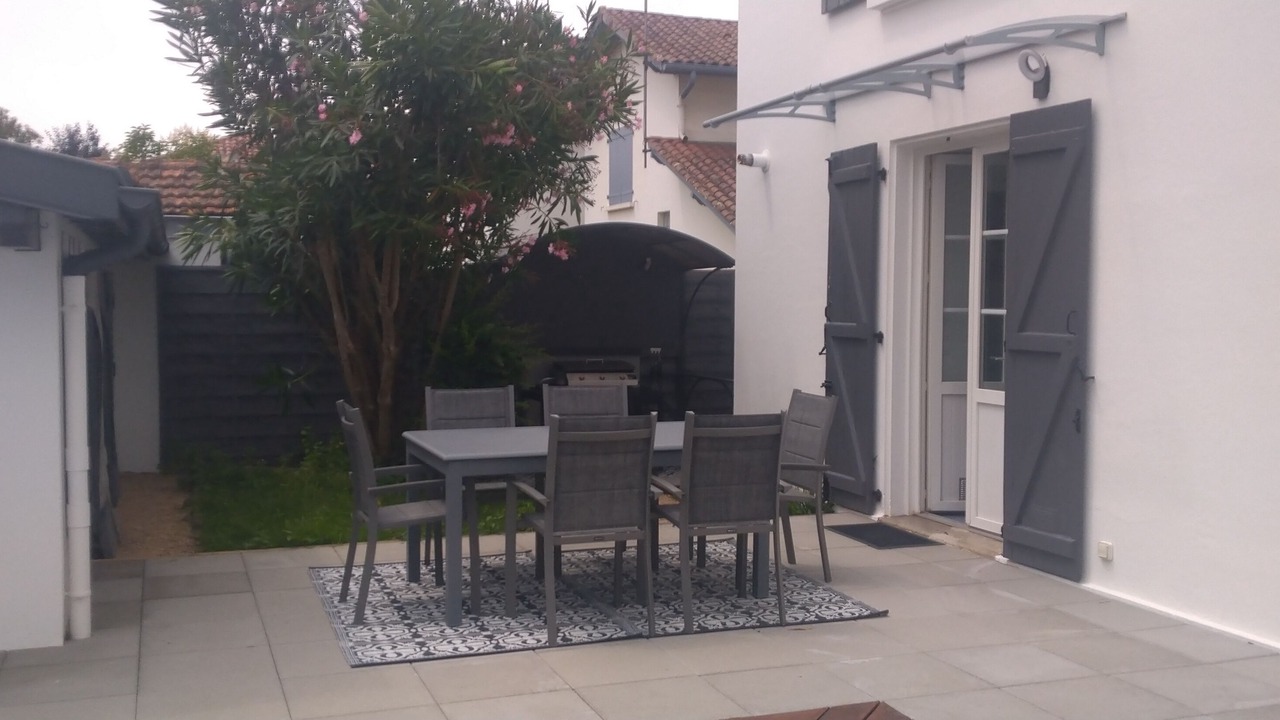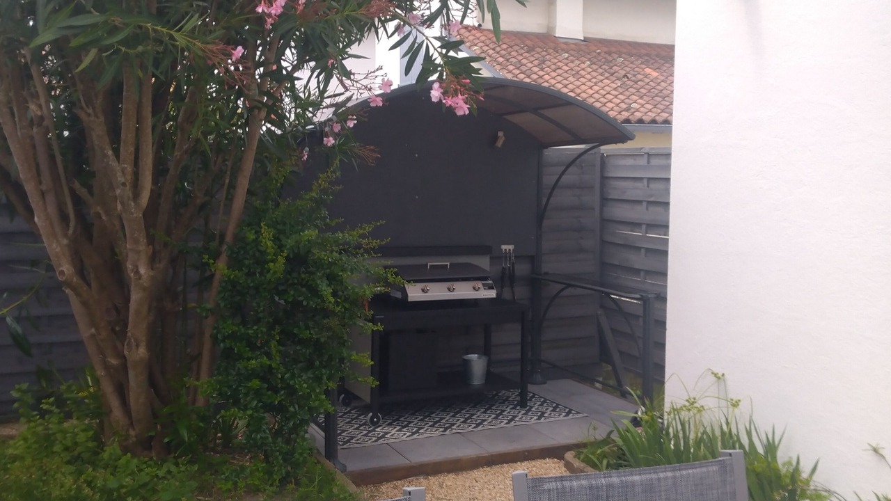 1930's town house of 130m², fully renovated with garden and private pool. On the ground floor, living room with a large screen TV, a kitchen and a pantry, a bedroom with bathroom. On the floor 3 rooms with their own bathroom. WIFI and Internet provided. The garden has a terrace with table and chair, as well as sun baths. The property is fenced, closed by a gate.